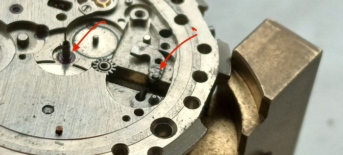 Работа механизма толкателя происходит асинхнхронно, сначала игла с ниткой пробивает полотно делая стежок, после в это же отверстие проходят ножницы и разрезают петлю превращая её в ворс.