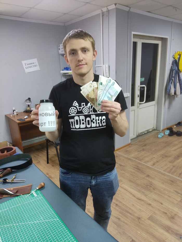 Решили, что, для начала, туда положим помощь от пикабушников. Ну и каждый день, с зарплаты, Роман будет откладывать небольшую сумму 100-200 рублей. Эти средства, для надёжности, будут хранится в мастерской. Видимо, мне, в этом вопросе Роман доверяет больше.