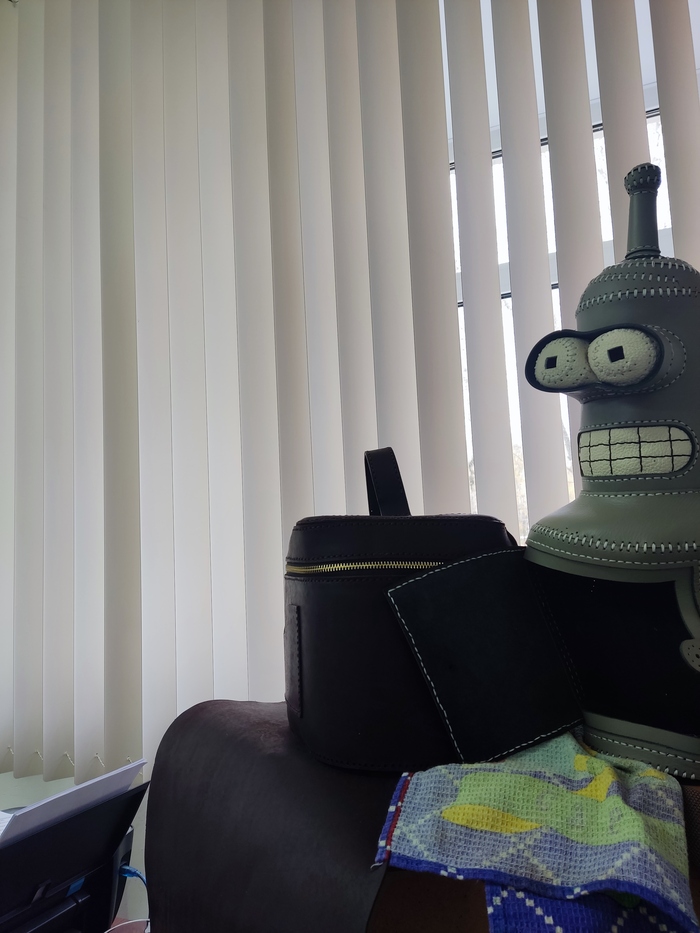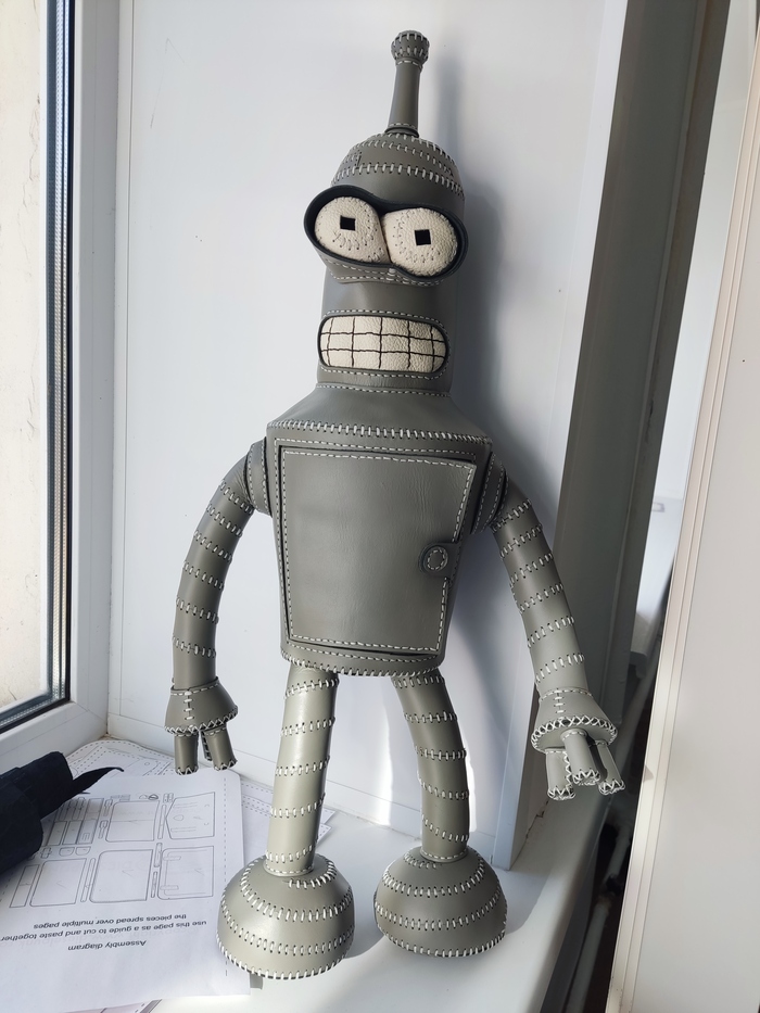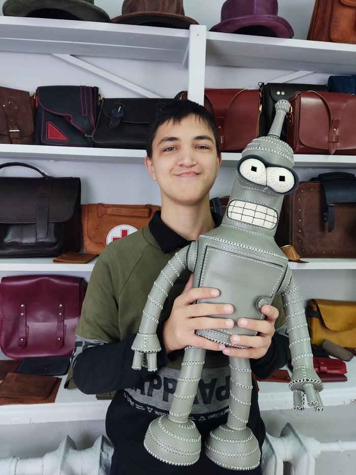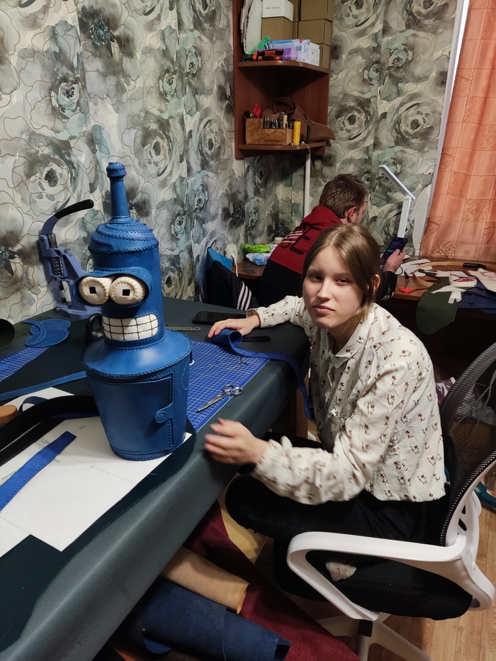 😊 за всеми уже присматривает новый Бендер (ждёт ещё руки и ноги) Всё таки хочу свою мастерскую - по заветам этого железного персонажа, с Блэк Джеком и.... У нас бывают неурядицы: и шьём не быстро, и работы не всегда хороши и средства, бывает, возвращаем. Но всё равно мы движемся вперёд. У ребят во всяком случае есть возможность трудиться и что-то зарабатывать. У многих наших выпускников такой возможности нет. А помещение - всё равно вопрос буду решать, просто, видимо, не совсем быстро. Но ничего, дорогу осилит идущий.