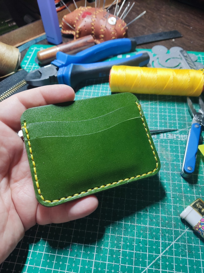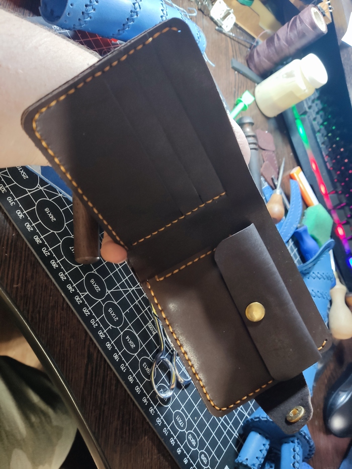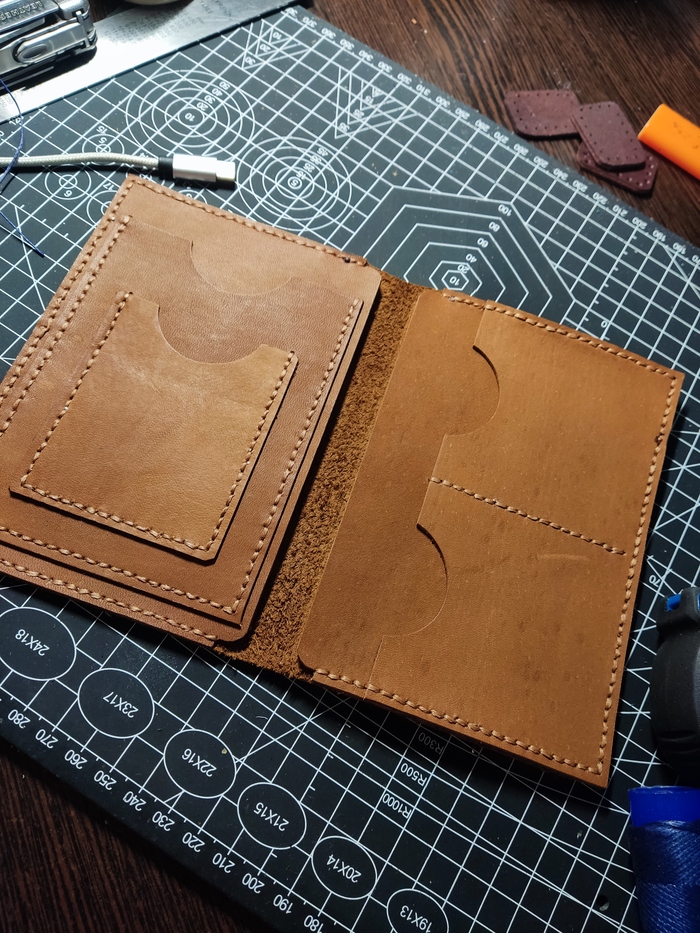 Сделали быстро, цена абсолютно вменяемая была (я бы даже сказала копеечная) за натуральную кожу и ручную работу с индивидуальной гравировкой. Внутри кармашки, спереди ношу СНИЛС, сзади мед. полис (он у меня пластиковый, карточка) и две фотографии близких мне людей в маленьких отдельных кармашках.