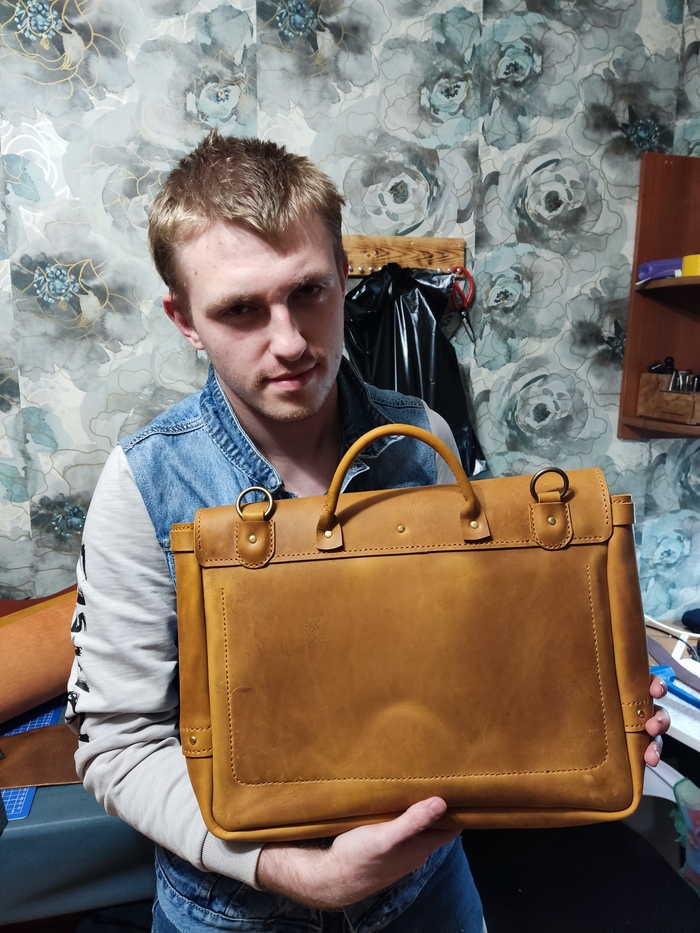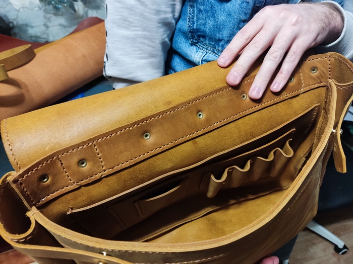 Вот данную сумку мы частично будем переделывать. И даже изделия на заказ не всегда получаются хорошими. Не стоит думать, что в мастерской всё просто и легко. Я часто прошу переделать, часто бывают и ссоры, могу повысить голос, так тоже случается не редко. И ученики не всегда добрые и вежливые. Хулиганов, матершинников, задир хватает. Я просто не сильно хочу об этом часто писать. Я педагог, это моя работа. Конечно, тут я показываю то, чем хочу гордиться. Если кто то хочет меня обвинить, в каком то подлоге, то приглашаю в мастерскую. Сами убедитесь, как происходит работа.