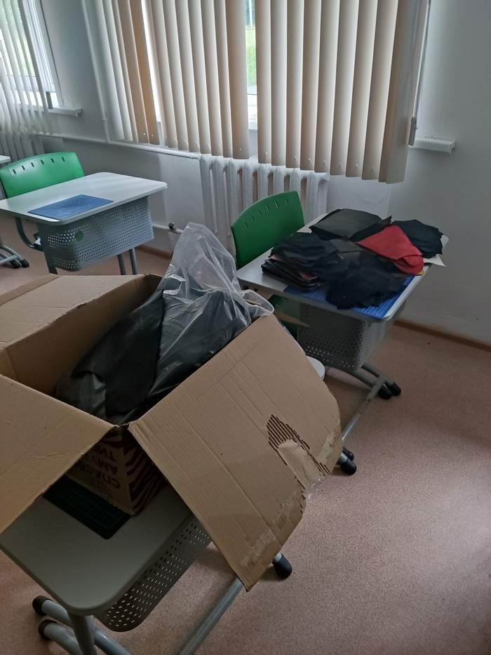 Это наши передовики разминаются в начале года. Трое ребят, уже хотят в производственной шить. Жаль её ещё не успеваю закончить. Так же хочу сказать большое спасибо Пикабу, один из пикабушников отправил нам коробку обрезков с производства, ребятам на поделки в самый раз.
