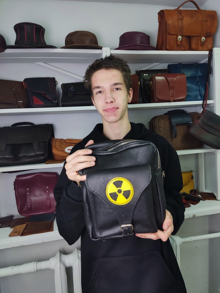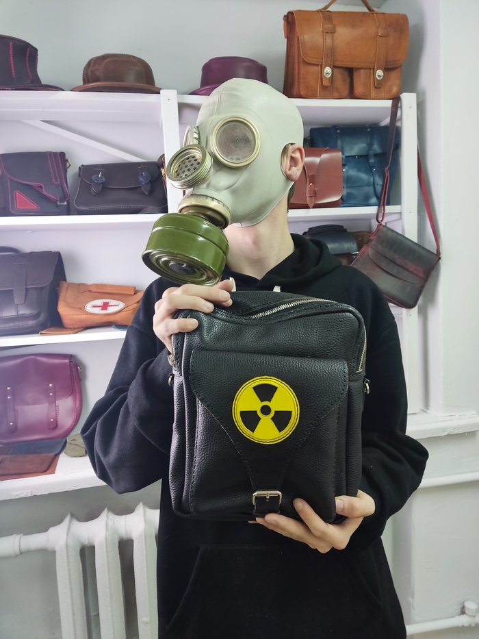 Также сшили просто бомбический деловой портфель. Закончили сумочку, с эмблемой радиации.