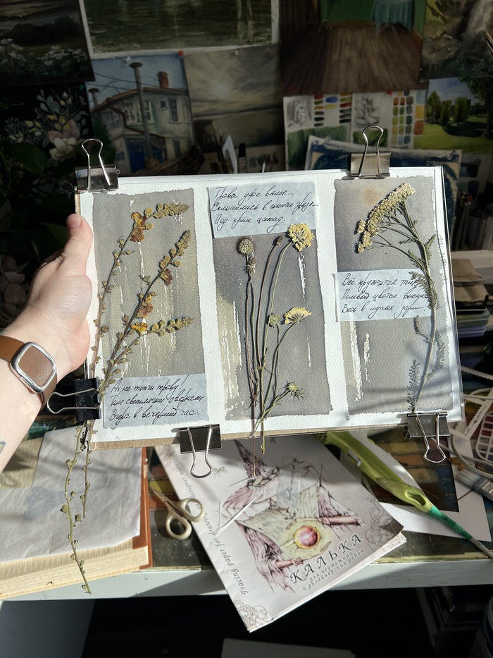 Для повторения опыта вам потребуются реактивы (феррицианид калия и лимонно-аммиачная соль железа, дистиллированная вода или готовые растворы с маркетплейсов), перекись водорода, лимонная кислота, акварельная бумага(она должна выдержать интенсивные полоскания), материалы для печати (гербарий), стекло, кисть, канцелярские зажимы.