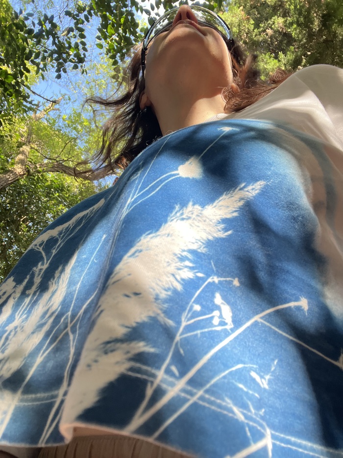 Материалы: футболка, феррицианид калия и лимонно-аммиачная соль железа, дистиллированная вода, перекись водорода, планшет для натягивания ткани, материалы для печати (гербарий), стекло, канцелярские зажимы.