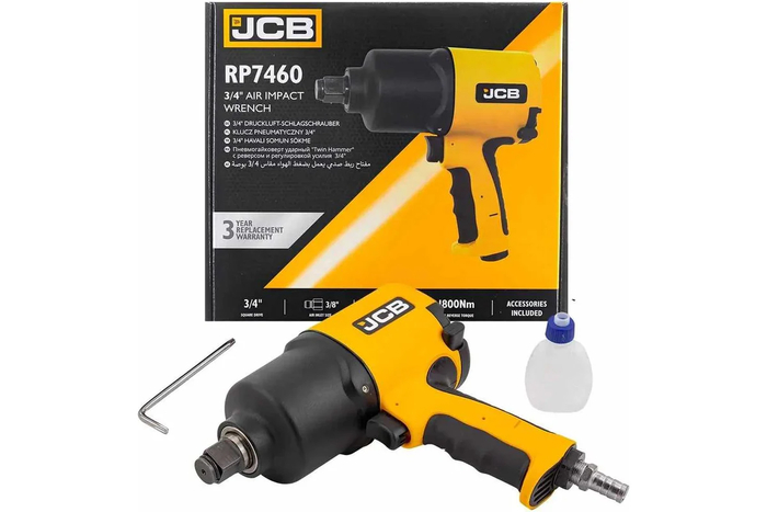 Пневмогайковерт ударный "Twin Hammer" с реверсом и регулировкой усилия 3/4'' от бренда JCB представляет собой инструмент, предназначенный для использования в автомобильных и промышленных механических работах. Он оснащен ударным механизмом "Twin Hammer", который обеспечивает высокую мощность и эффективность при работе.