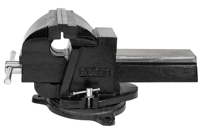 Поворотная конструкция тисков позволяет легко и быстро менять положение детали, что особенно удобно при работе с круглыми или сложными формами. Наковальня на тисках позволяет использовать их для обработки металлических деталей молотками и другими ударными инструментами.