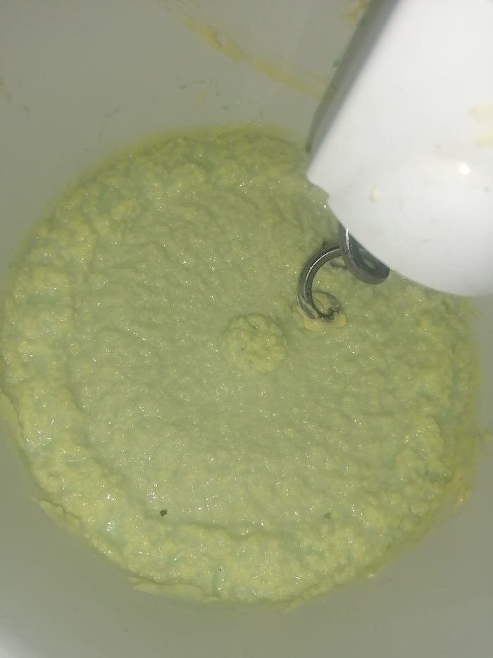 Приготовление крема заняло около 20 минут заранее выложенное масло(чтобы оно было комнатной температуры) закинул в блэндер и начал взбивать до получения пышной мягкой массы, потом долил сгущёнки и взбивал до однородного состояния. И всё было бы хорошо, если бы не моя "гениальная" идея добавить сироп Блю Кюрасао, для цвета и придания крему цитрусовова вкуса. Сироп пустиь и плотный, но меньше по плотности масла со сгущёнкой, по этому стали образовываться небольшие комки сироп между которыми служил лишь разъединителем. Вкус крема хуже не стал, но во внешнем виде потерял изрядно. Хорошо, что в готовом торте его видно только как прослойку.
