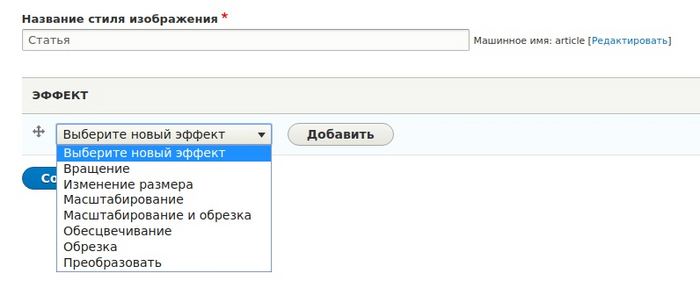 Жмем кнопку «Добавить стиль изображения» → Пишем название и меняем машинное имя.