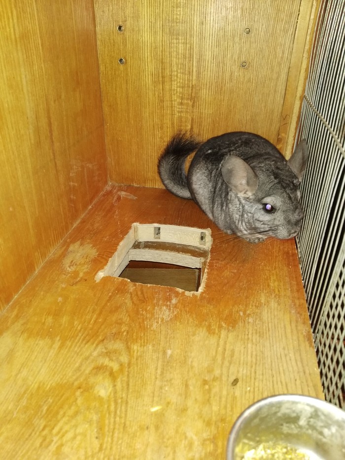 Если сделали второй этаж и вас посетит мысль, что, блин... Не залезут... То гоните эту мысль подальше. Ещё раз говорю: шиншилла это смесь кролика с белкой. Залезут. Надо будет - от бортов прыгнут. Кстати на фото клетки вы можете лицезреть домик. Можно сбить его из любых старых досок, мне вот достался в наследство от знакомого, ранее державшего кроля (царство ему небесное. Всмысле кролю). НО!!! Не повторяйте моих ошибок. Я, проектируя клетку, поставил домик в самом низу. А шиншиллы предпочитают тусить чем выше, тем лучше. Оттого они в это домик почти не ходят. Но это не плохо и вот почему: зверьки должны всегда иметь укрытие. Своеобразная нора у них должна быть в любом случае. Если шиншилла почувствовала алярму - у неё должно быть место сныкаться, иначе сильно стрессанёт. В случае с моими, они прекрасно запомнили двуногую обезьяну, которая жрать приносит, и нихрена её (меня) не бояться. То есть моим уже укрытие как бы не надо, хотя на самый крайний оно всё равно есть, а вот вы делайте хату как можно выше. Мне тупо вскрывать клетку и переставлять уже лень. Таким образом, подведём резюме: