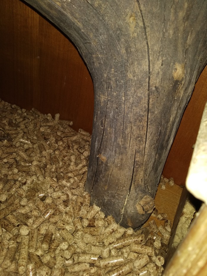 В остальном их туалет проблем не вызывает. Огромный плюс шиншилл - почти полное отсутствие запаха. Ну, если конечно месяцами не чистить, то начнёт вонять ссаниной, но замена подстилки хотя бы раз в неделю (а то и две) решит эту проблему. Подстилка представляет собой древесные гранулы для кошачьего туалета. Не вздумайте сыпать комкующийся! Сожрут и отъедут. Хотя кошачий наполнитель это дорого. Я беру в строительном магазе промышленные гранулы за 400 рублей мешок. Не знаю на сколько хватает, жена постоянно ворует кошаку. Ругаюсь, но ничего не могу поделать. Могу сказать лишь то, что такого мешка шиншиллам и кошаку хватает на уверенные два месяца. Без кошака - все пол года, наверное. Кстати кошак: