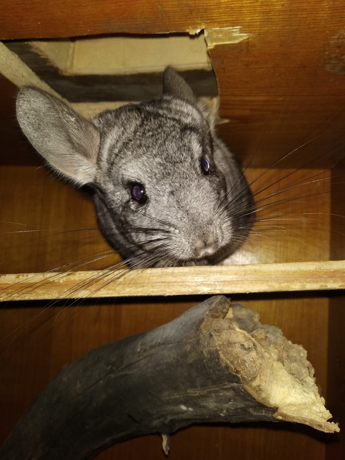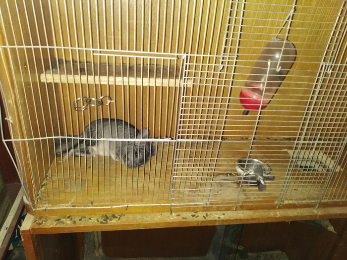 Кстати решётка была сделана из старой клетки Бендера. Да, та площадь в которой он жил до встречи со мной, сейчас является лишь небольшой стеной отпущенного ему пространства. Шуша жила в условиях ещё хуже. Забирал у разведенцев, там в клетке длинной 50 см жили мама, папа, Шуша и двое её братьев с одного помёта. Не надо так делать. Шиншилла - она почти лев. Без должной площади она тоскует, депрессует и жиреет. Потрудитесь найти старый шкаф (хотя бы) это не так уж и сложно.