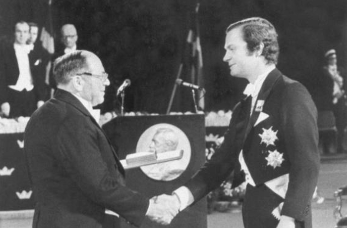 Вручение Леониду Канторовичу диплома и Нобелевской медали королем Швеции Карлом XVI Густафом. 10 декабря, 1975 год.