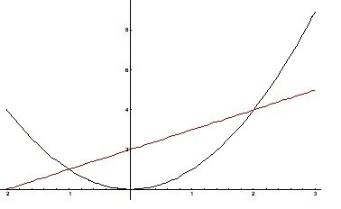 Для того, чтобы можно было расставить пределы интегрирования, требовалось найти точки пересечения прямой y=x+2 и параболы y=x^2. Девушка написала на доске уравнение x^2 = x + 2, и уверенно привела решение: x = \sqrt{x+2}...