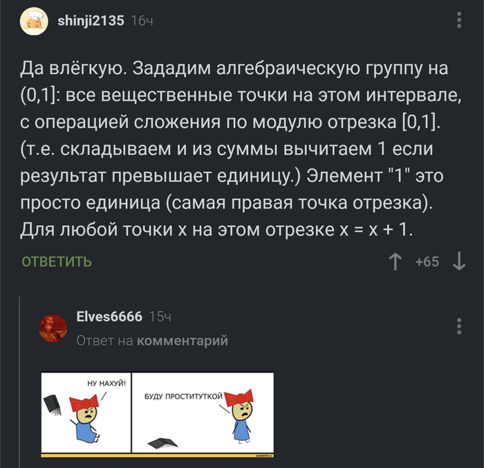 *У меня настолько плохо с математикой, насколько плохо с философией у преподавателей в техническом вузе с философией, что и стало причиной моего первого педсовета (мы подрались с философичкой на паре). На первой паре она заявила, что кто не уверует в господа нашего Иисуса Христа до конца семестра (в том числе и двое мусульман из нашей группы), получит двойку.