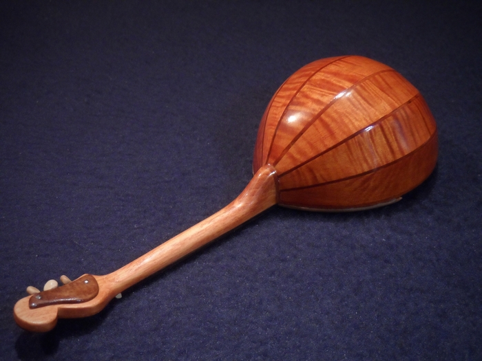 Дерево использую натуральное. Например в этой домре на корпус решил использовать волнистый клен. Хоть и в таком масштабе он показал себя очень капризным но результат мне кажется оправдывает потраченные нервы.