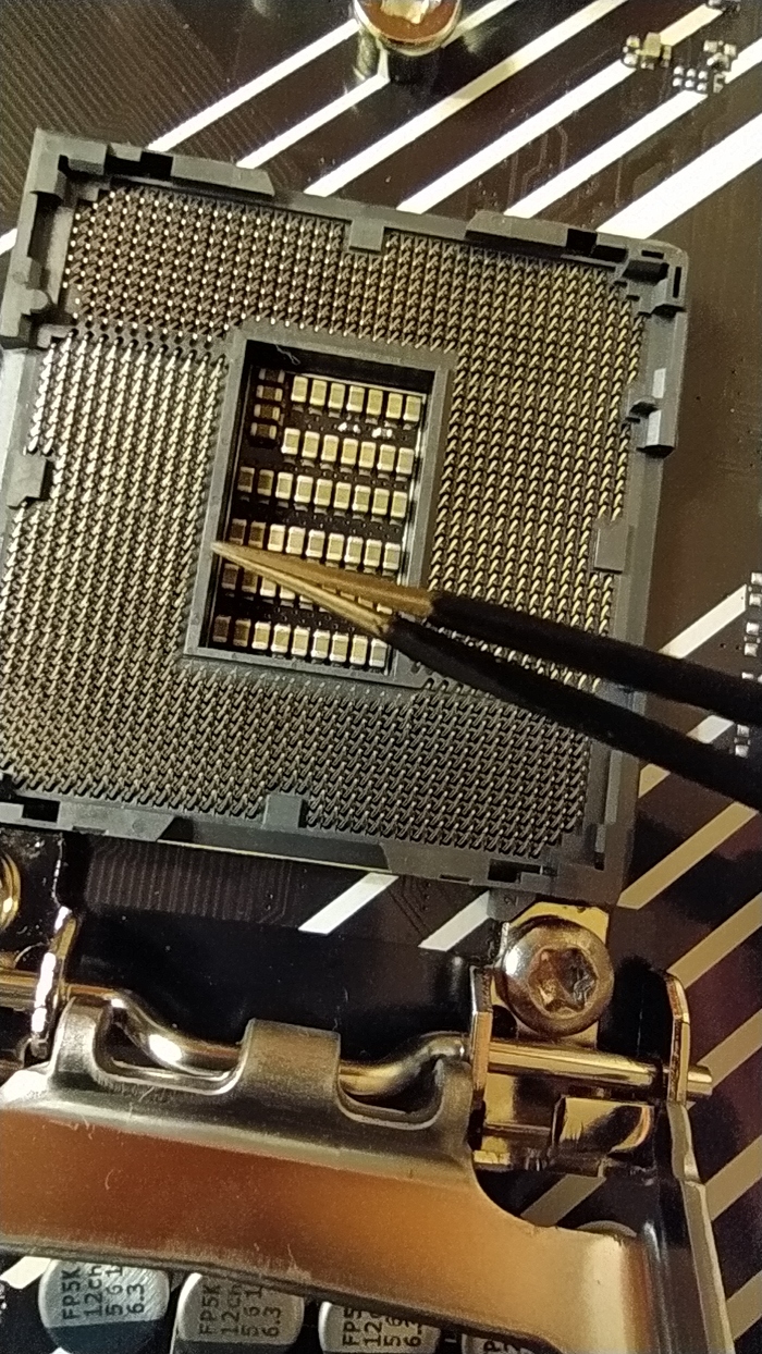 А тем, кто собирается приобретать мат.платы рекомендация - прямо в магазине смотрите сокет, а ещё лучше, ДО ОПЛАТЫ попросите продавца или сотрудника сервисного центра открыть сокет и проверить его, чтобы на камерах было видно, что Вы не притрагивались к нему.