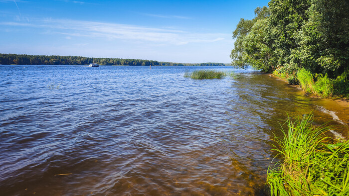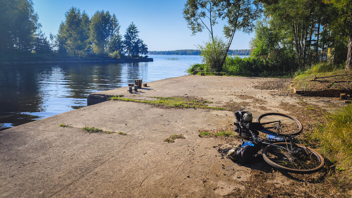 Выбираюсь из леса минут 40, да и вкручиваю по шоссе 30 км до Сенежа. Трасса, конечно, так себе - практически отсутствующая асфальтовая обочина, приходится, как и всегда, ехать по краю узкой полосы, фуры ̶у̶б̶и̶в̶а̶ю̶т̶ притирают, жара начинает одолевать, но так или иначе, спустя чуть больше часа - я в Солнечногорске. Название, конечно, не совсем соответствует действительности - провинциальный панельный городок с разбитым асфальтом - в принципе, как и везде.