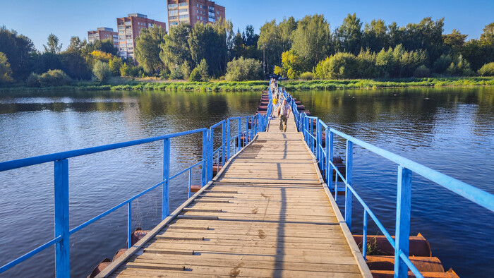 Сам городок, в общем-то, ни хорош и не плох, самый обыкновенный. Мне скорее понравился. Его главное преимущество, конечно, что он стоит у Волги). Навигация здесь не работала, поэтому просто ориентировался по карте. Автомобильный мост был закрыт на ремонт, в итоге прошел таким понтонным.