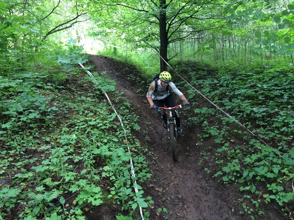 Но через пару спусков мы раскатились, пришло понимание как тут ехать и дело пошло. Конечно полностью оценить трассы «Окского» нам не удалось, но размах впечатляет. Дикие уклоны, скоростные сингл-треки, рукотворные препятствия. Множество дичайших поворотов с отрицательными уклонами по сырой глине на диких уклонах, заставляли вспомнить все, что умеешь и даже чуточку больше.