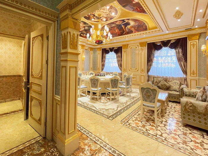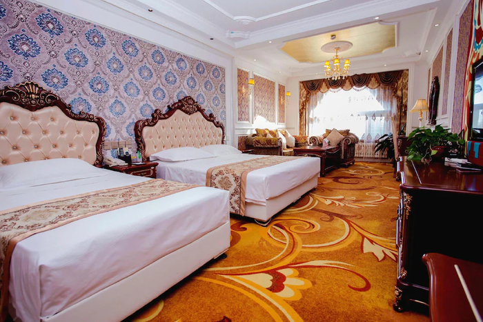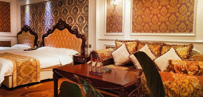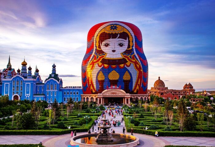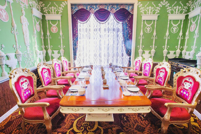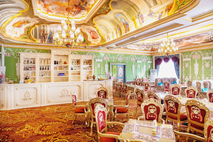 На самом деле, отель не русский, а китайский, но оформлен в русском стиле. В стиле русской матрешки. Или в стиле "дорого-богато- по-царски". Ну или "Армянское барокко не будь ко мне жестоко"