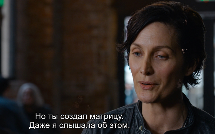 - Ааааа.... Он даже не знаком с тринити. По сути он какой-то задрот, который создал игру матрица (с виртуальным погружением и симуляцией истории, чтобы каждый смог побыть этим самым Нео). Прикольно. Сейчас нам покажут виртуальный мир внутри виртуального мира, молодцы))