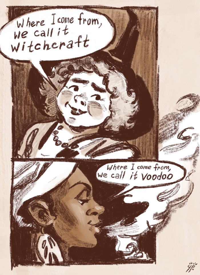 Вот и сказочке конец, а кто читал, тот пусть оставит какой-нибудь тёплый комментарий. Перевод мой, редакция и экспертный совет по уровням боевой готовности — Алексей Гапонюк, за что ему два бананановых дайкири вне очереди. Материалы взяты тут и тут. Первый пост по «Ведьмам за границей» тут. Предыдущие ведьминские посты: «Творцы заклинаний» и «Вещие сестрички».