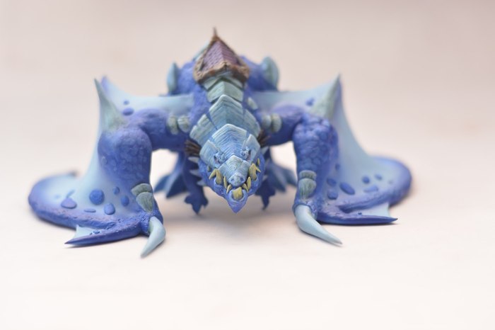 Следующую работу делала по Warcraft. Меня завораживают Облачные змеи. Одного такого красавца я сделала. Решила испробовать суперпрочную глину cernit.Круто! Это оказалась супер глина. Подумала я, когда начала лепить. Очень мягкая. Мучилась с другой твёрдой, она блин, как камень, что аж ладони болели всё время разминать. Но вскоре к плюсу добавился минус. Новая такая мягкая, что стоит взять фигурку, как та сминается. Поэтому приделала на подставку.
