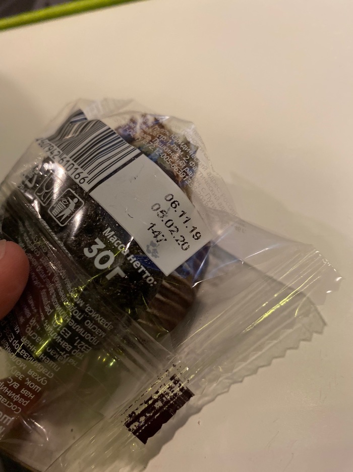Глянул срок годности, ещё не кончился, он есть и на основной упаковке и на упаковке с кексами. Сроки везде совпадают.