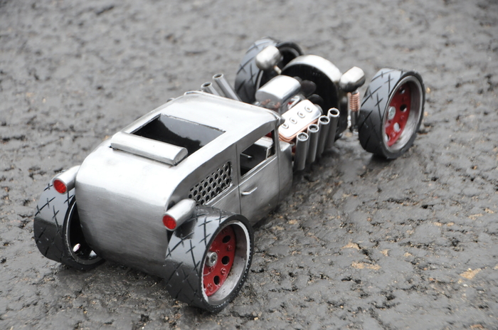 Обычно такие вещи делаю на заказ. Но эту машинку решил сделать просто потому что захотелось. Начал делать с колёс. Нашлись разно широкие. Вот их и решил поставить.