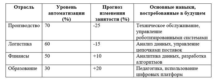 Эти данные показывают, что влияние автоматизации и ИИ на рынок труда неоднородно и требует комплексного подхода для обеспечения устойчивого развития и минимизации негативных последствий для работников.