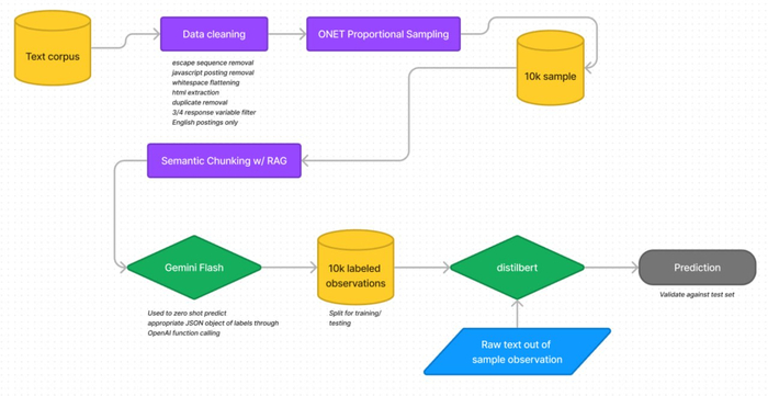 DistilBERT + fine‑tuning на 10 000 документов → компактная модель с эффективным временем обучения (4–9 ч на ПК) с 97% качества модели-родителя. Пайплайн извлечения признаков включал следующие шаги: