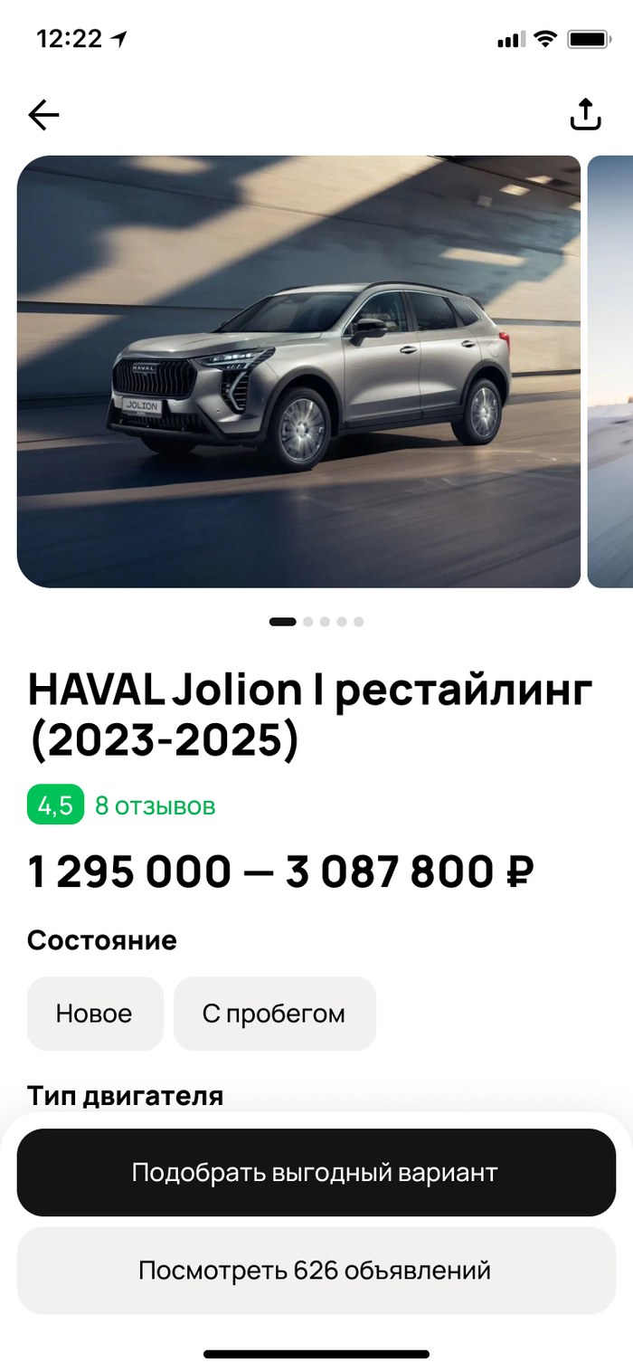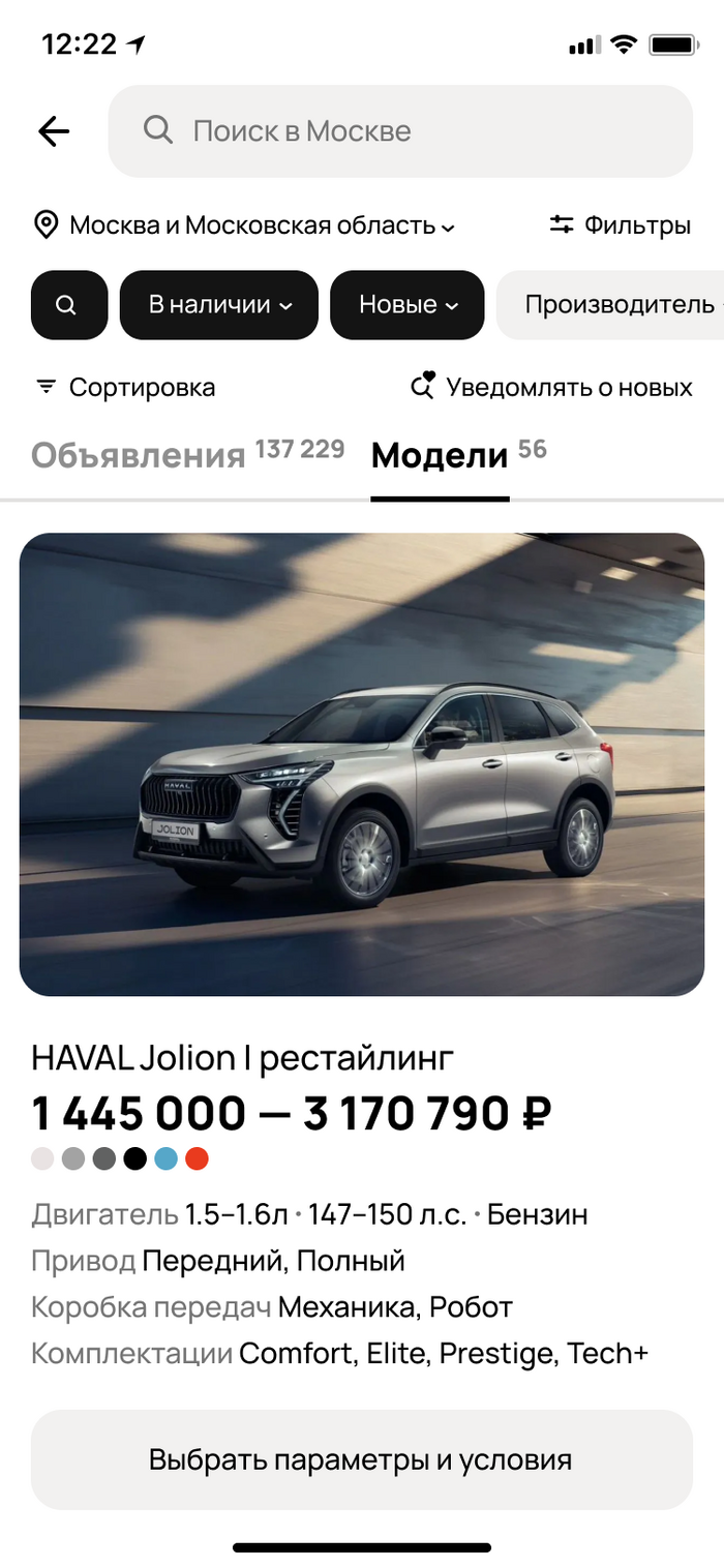 Чтобы упростить процесс изучения авторынка для пользователей, в Авито Авто запустили новый формат поиска авто по моделям. В карточках собраны все доступные характеристики: состояние авто (новый или с пробегом), тип и объем двигателя, коробка передач, привод, комплектация и цвет. При изменении параметров система автоматически обновляет диапазон цен, помогая сравнивать варианты и выбрать оптимальный.