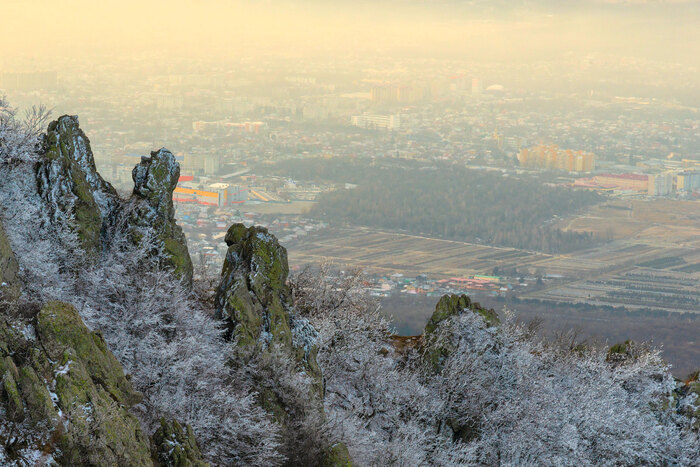 Удивительно, но город предстал нам в новом свете - заснеженный и тёплый, как бы противоречиво это не звучало. Только спустя сутки мы поняли, что для Пятигорска это не норма, и мы попали, так сказать, в аномальную погоду (хотя можно было предположить эту данность, так как от Кропоткина до Армавира трасса была, мягко говоря, жесть).