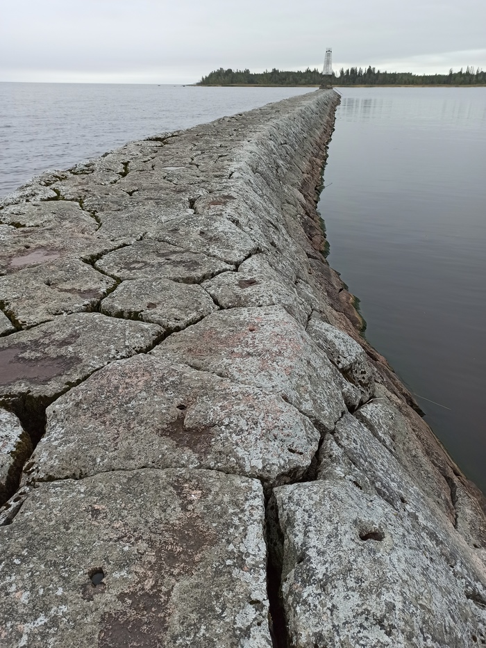 Длинный мол финской постройки, как на маяке Вуохенсало, но сильнее разрушен временем сильнее. Ну и мусора огромное количество, аж противно.