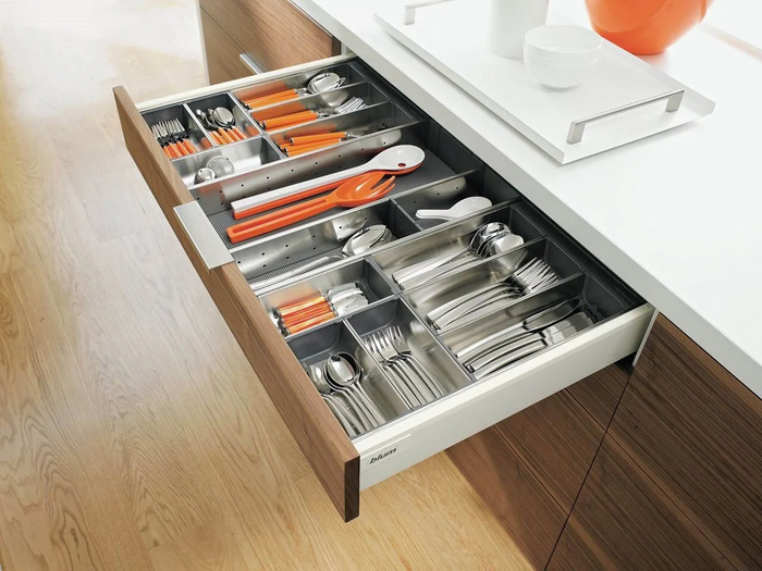 дорогая фурнитура. BLUM - это ТОПовая мебельная фурнитура, которая позволяет сделать на кухне абсолютно все дизайнерские решения. Подробно останавливаться не будем. Если вам интересно, то просто забейте в поиске "фурнитура BLUM" и ознакомьтесь с информацией.