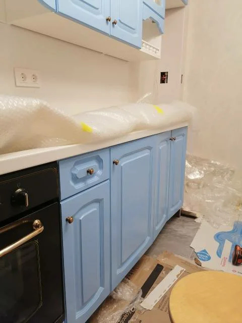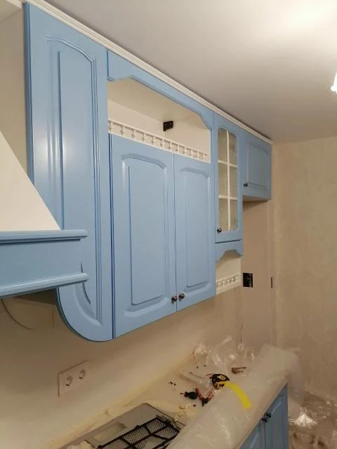 Если ваша кухня, а именно ящики и основная фурнитура в нормальном состоянии, то стоит рассмотреть более дешевый вариант, нежели покупка новой кухни - реставрация или покраска фасадов кухни.