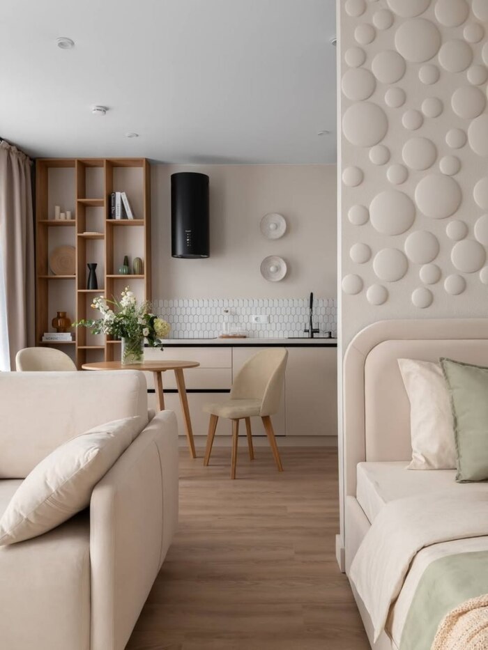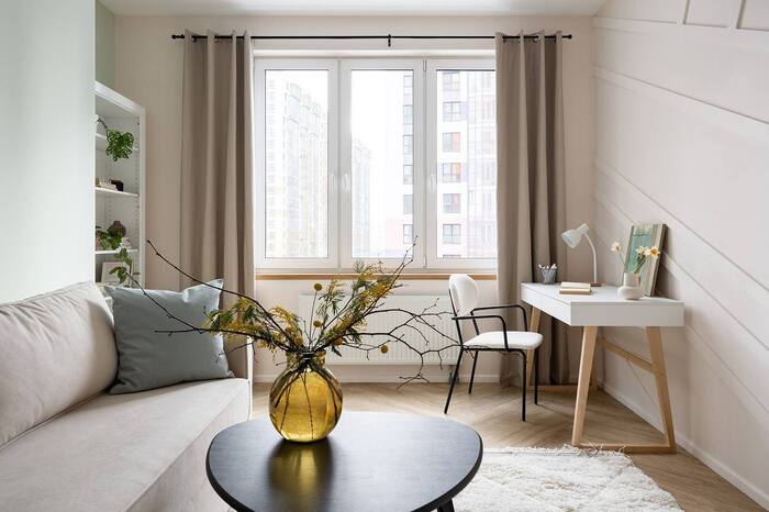 Перед дизайнером стояла задача создать универсальный, но при этом стильный и практичный интерьер, который привлек бы арендаторов.