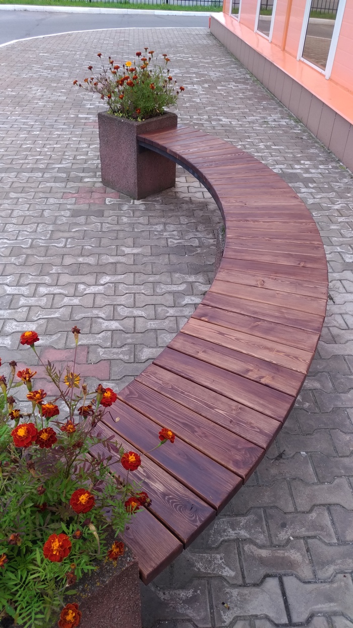 Отец попросил сделать скамью в баню. Обычную делать не хотелось. Открыл Pinterest и там всё завалено таким вариантом. Чертежи взял с Яндекс дзена: двухместная скамейка со встроенным столиком. Сам процесс не снимал, думал так мелочь. А когда всё покрыл маслом и протестировал посадку, то она мне очень понравилась. Сидеть удобно, наклон 15 градусов. Наверное в следующем году надо будет на террасу сделать ещё одну