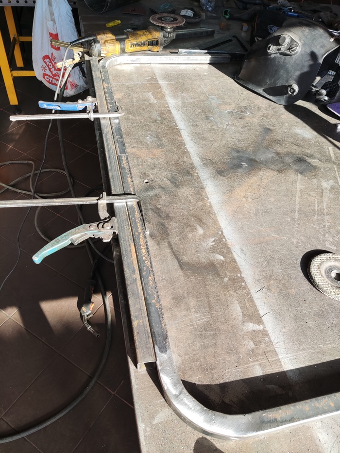 Сегодня почти закончил верх. Сварил рамку, приварил крепёж для дерева. Теперь осталось придумать контур для освещения и сделать паз.