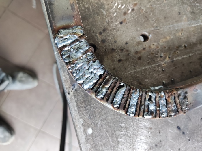 Металл тонкий, да ещë и после реза болгаркой, сгорает очень охотно. Тем более зазоры приличные, размечал на глазок, без расчëта, можно было сделать меньше резов. Пришлось накинуть много лишнего металла, практически вылепить кусок трубы) Я конечно любитель, а не сварщик, может в это дело. Но нормально нарезанные конструкции варю без проблем и достаточно красиво) Даже гофру себе в машине приварил красивей, чем в рандомном автосервисе насирают полуавтоматом. Самое нудное по металлу сделал, сижу думаю крючки самому сделать или купить?) Пожалуй на сегодня модель сделаю, и на этом остановлюсь)