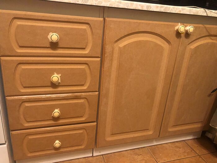 Сами фасады (МДФ) в большинстве своем находятся в хорошем состоянии, а вот пленка у многих начала отваливаться уже спустя несколько лет использования кухни.