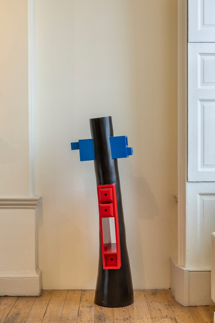 Два шкафа почти полностью покрыты деревянными шипами или бусинами, напоминающими волосы вокруг абстрактного человеческого лица, как гвозди, которые иногда украшают африканские маски.В остальном работы практически не украшены и сделаны только из самых прямых пород дерева, в стиле ар-деко.