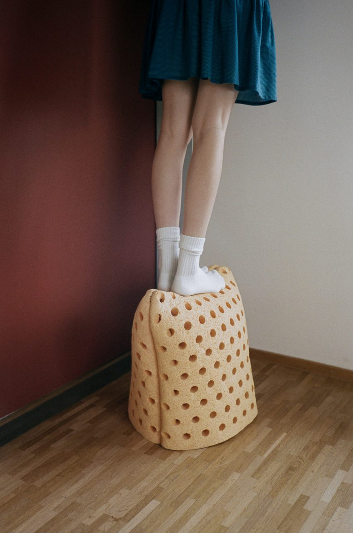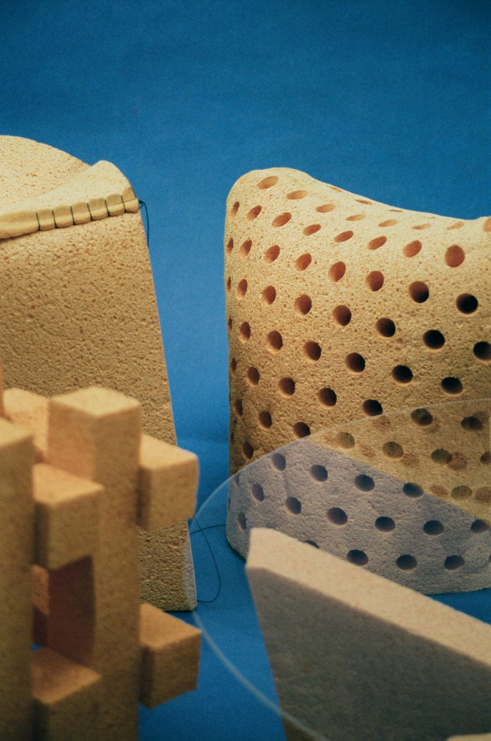 Используя эти готовые строительные блоки, исследовательская группа ÉCAL опробовала различные методы резки, фрезеровки и соединения, чтобы заставить губку расширяться различными способами, и вместе с группой студентов-дизайнеров выпускных курсов изготовила прототипы изделий с использованием этих методов.