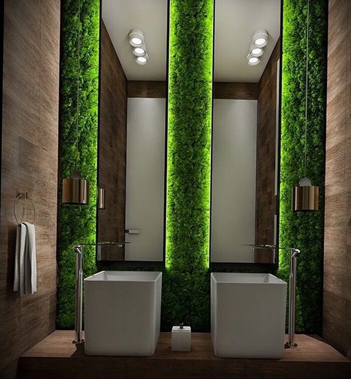 Описание: Использование растений для украшения ванной комнаты и улучшения качества воздуха.