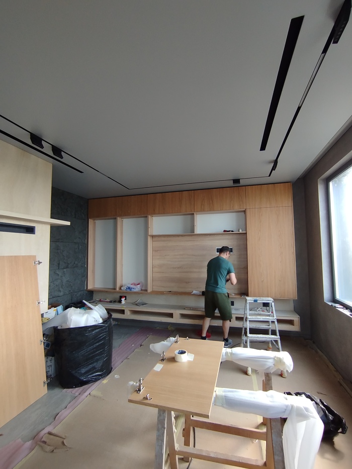 В данном случае в тот момент когда уже мебель была готова ,заказчик приобрел телевизор отличный по размерам от того который был указан в проекте .