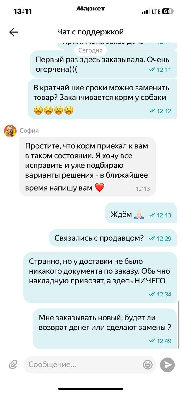 Корм если что мы вернули, но я уверен что упаковка уедет другой собачке в ближайшие дни, и кто-то другой будет кормить свою собаку отравой, верно @Yandex, ?)))