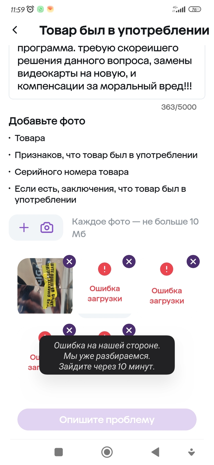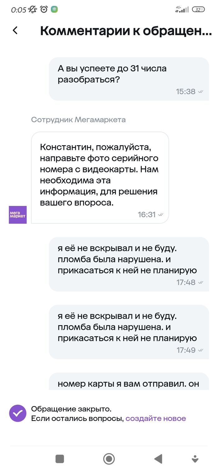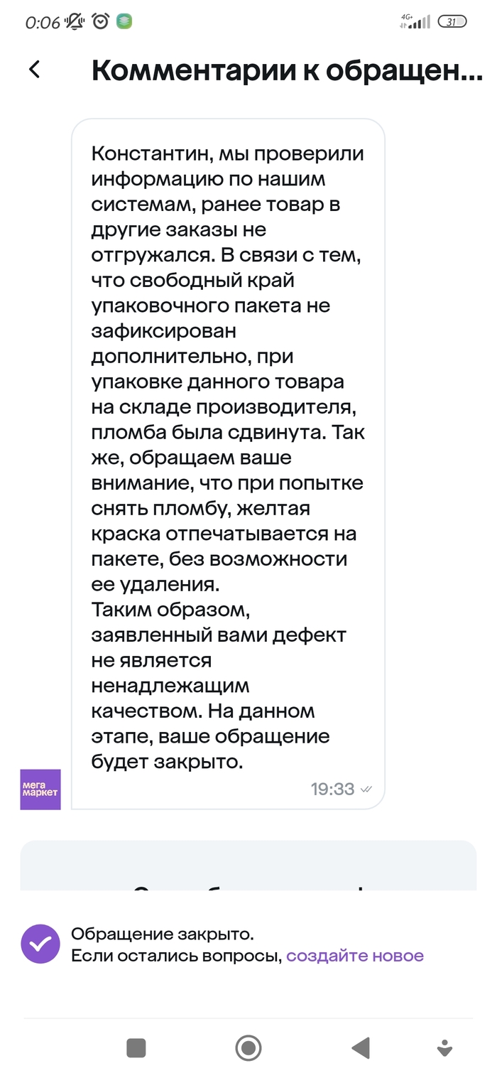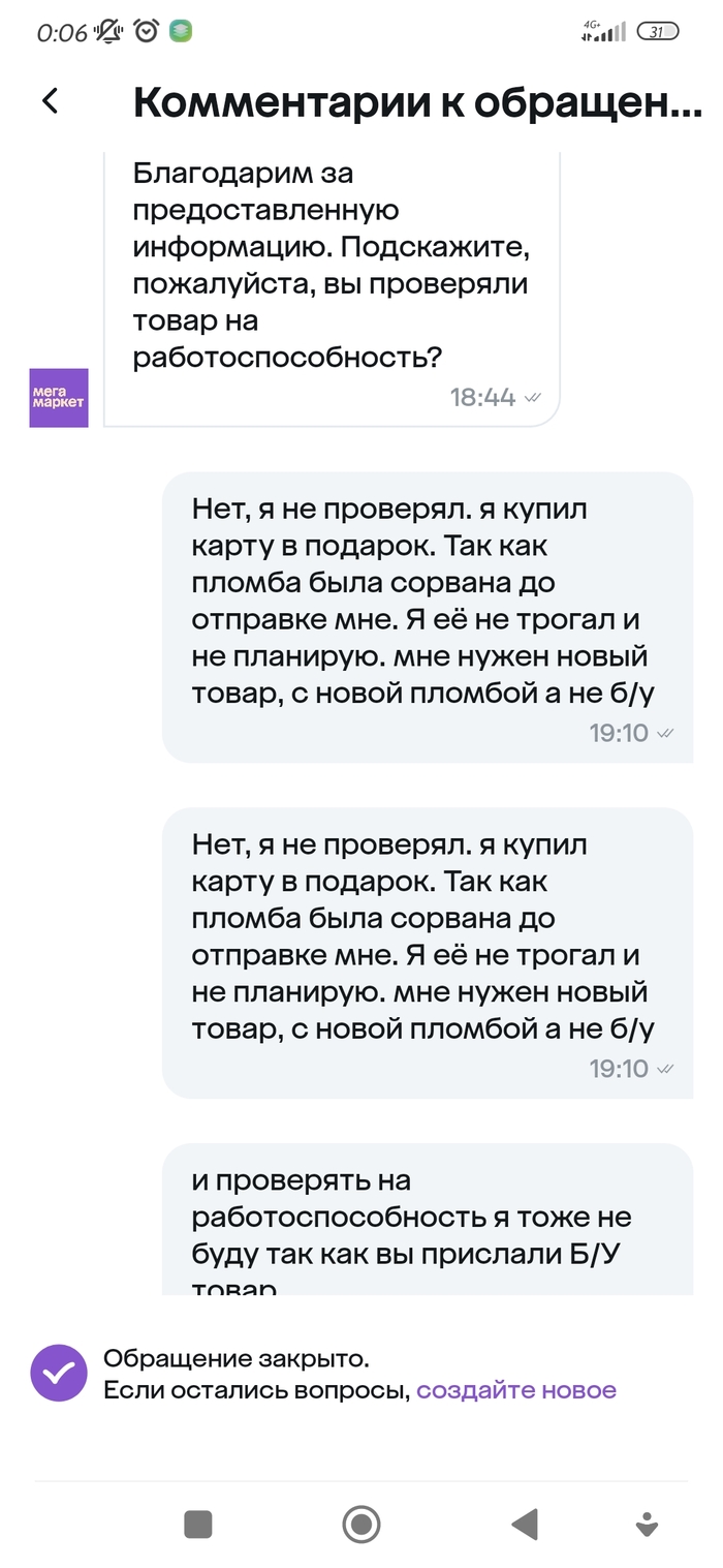 Когда я зашел в чат поддержки, чтобы прикрепить фото чека об отправке, то обнаружил, что чат закрыт в одностороннем порядке. Без решения моего вопроса. Я снова открыл это же обращение, возмутился типа: "Какого хрена!" Оператор (или бот, хрен их отличишь) быстренько ответил: "Не волнуйтесь. Вы в любой момент можете открыть обращение. Мы ждем чек вашего почтового отправления". Я прикрепляю фото чека почтового отправления и пишу запрос на подтверждение, что вся информация отобразилась и получена службой поддержки. В ответ - тишина.