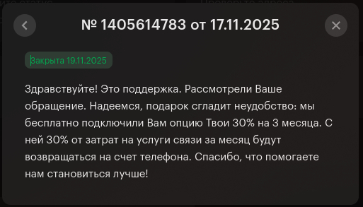 Сегодня (19.11.2025) пришло уведомление, что обращение рассмотрено, но тариф обратно не поменяли, открестились каким-то подарком.