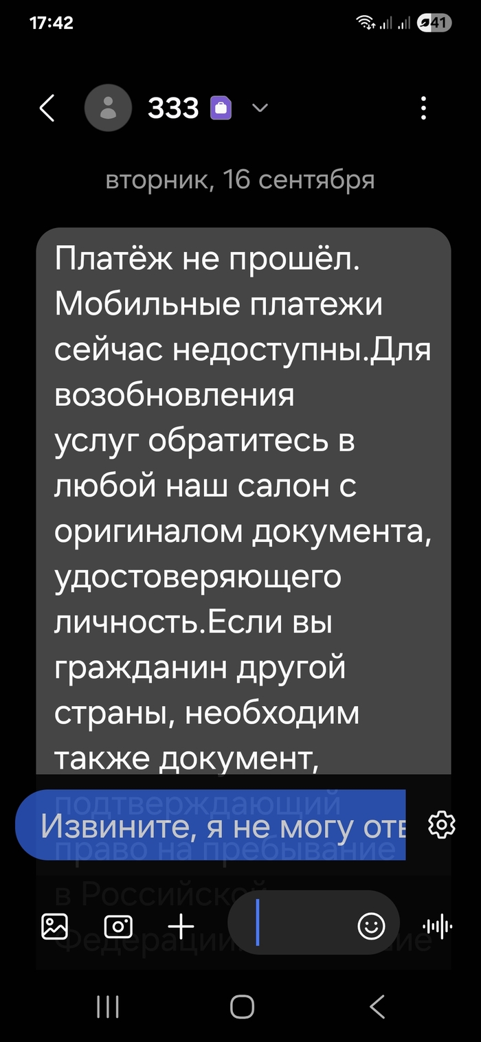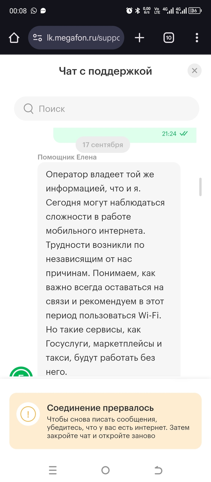 больше всего меня забавляет факт того что, вы в лице мегафона избирательно даёте связь для маркетплейсов ,госуслуг и такси. А я пользоваться хочу всеми благами интернета - посмотреть хоккей любимой команды, переписываться в wa, ТГ да и многое чем ещё,но только то что разрешено.